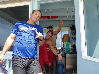 Approaching SMS Tower 17, we notice the guard was in the process of opening the tower when he left to go make an ordinance enforcement of a surfer in the designated swimming area... and it turns out to be...