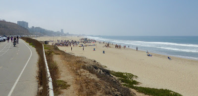 Below, coffee cup in hand, Will Rogers JG Instructor, Cheri Ellington, heads out to the beach to meet with her squad of JG's...