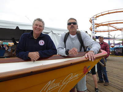 At this year's event, as in past years, were Tom and Georgina Volk, below, who both paddled for the Manoa Paddleboard Club on the Santa Monica Pier in the late 1940's and 1950's. Tom was also for many years a beach lifeguard for Santa Monica City and worked with the likes of Pete Peterson, Bill North, Tom Zahn and many other notable guards.