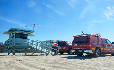 Dateline: Monday morning, Sept. 26, 2016... we checked in at CSHQ around 10 a.m. for a quick off duty workout and bumped into OL Ben Gottlieb taking a call (and a High Five off camera) from his fan base congratulating him on his second place finish in the Catalina to the Mainland 2 man dory race yesterday along with his dory partner, Rookie OL, Conor Verjee. Then we hit the beach for an off duty foot patrol to SMS Tower #26 for a swim...